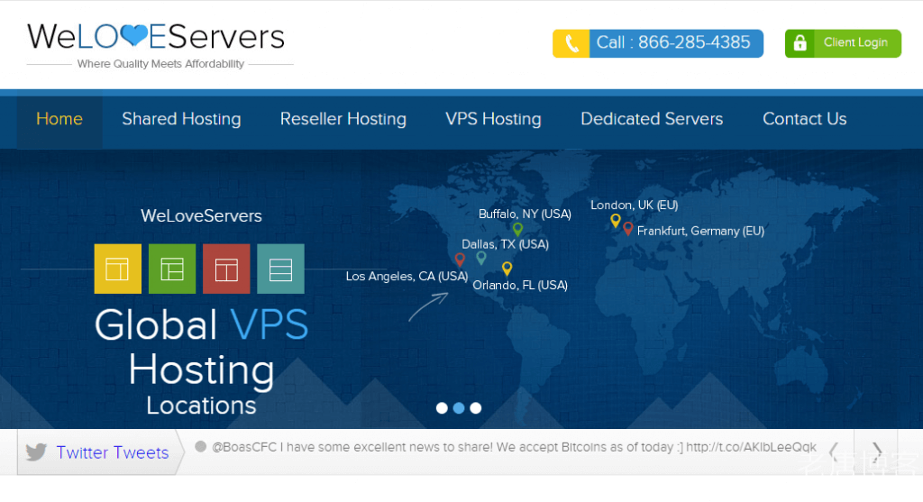 WeLoveServers,名字有点长,简称WLS。这可是官方简称,不是我自己随便想的。WeLoveServers这家商家主要采用OpenVZ架构,数据中心包括了洛杉矶、达拉斯、纽约和英国等,默认开通VPS为100M带宽,可以提交工单申请升级到1Gbps出口。